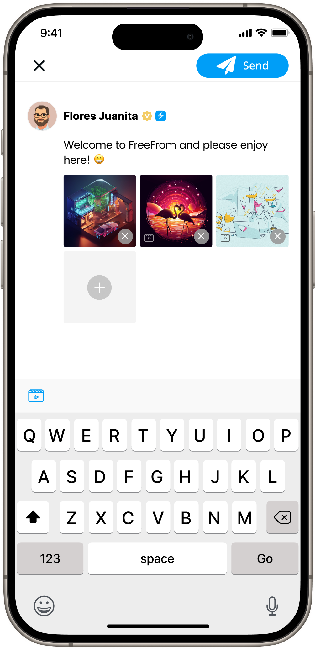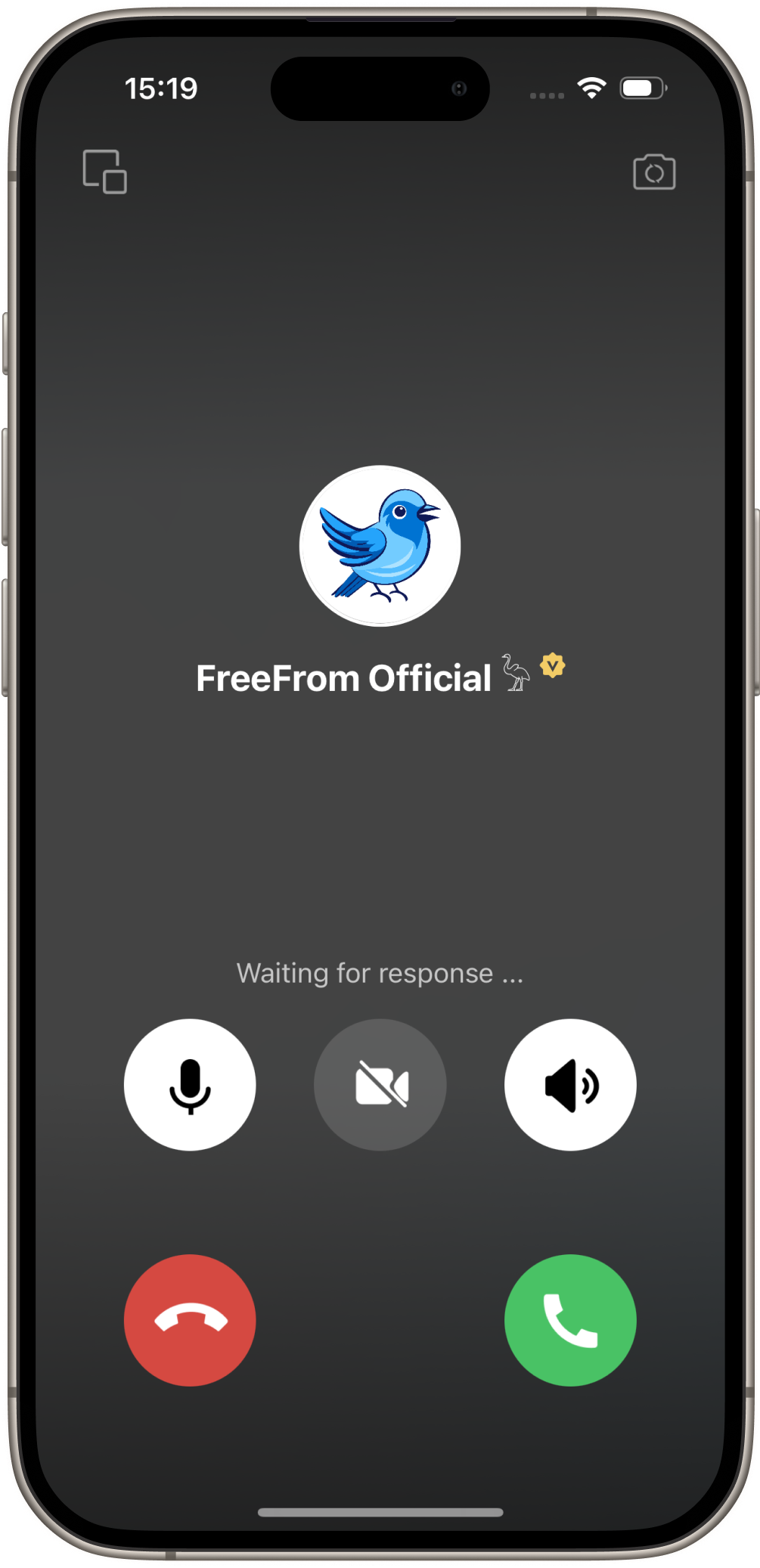 For private chat, FreeFrom supports both voice and video chat. Click the plus button in the bottom left corner to call the chat partner.